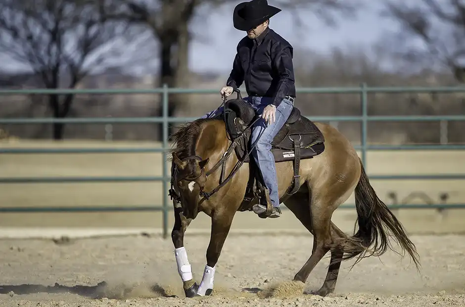Clinton is riding Goose (aka Evil Canivile), a gelding by Hollywoodstinseltown out of Nic N Smart, in this training article. Learn more about the horses and bloodlines that make up Clinton’s performance horse program by visiting clintonandersonperformancehorses.com.