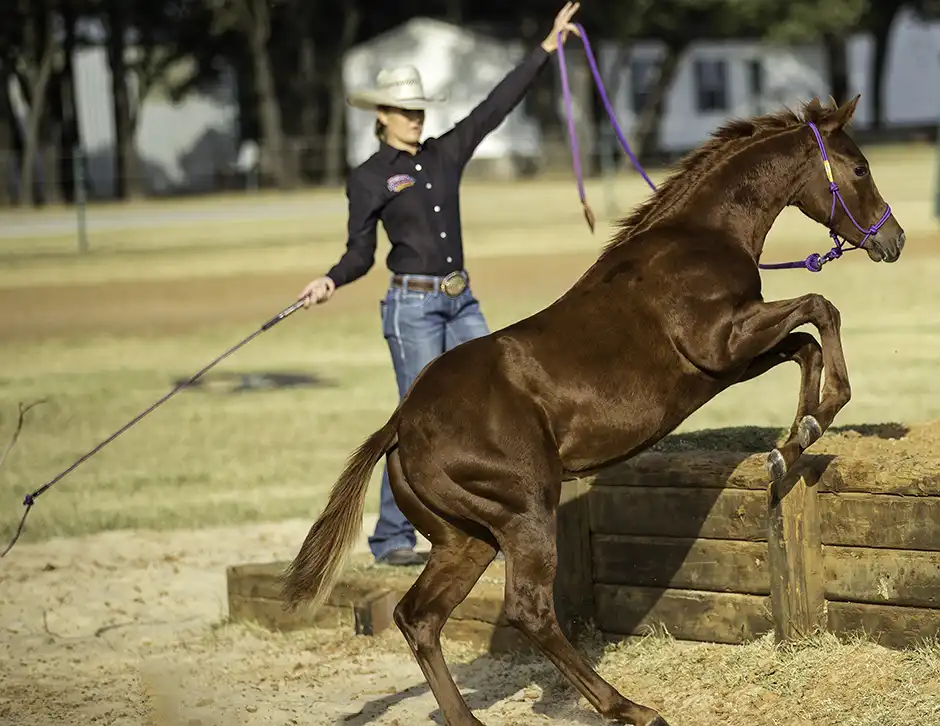 Here’s the good news: There are a lot of things you can do with your yearlings to help develop their skills and build their confidence. The key is giving them a purpose to move their feet forwards, backwards, left and right. All of the exercises you’ve taught your young horse from the Foal Training Series can be put into practice over obstacles.