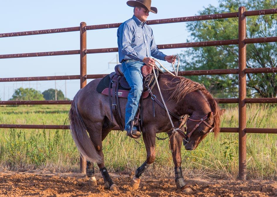 One of the rollback fences is located near where we typically get on the horses, so after we warm them up, we go put their feet to work doing rollbacks on the fence. I’m using rollbacks as an example because they’re one of my all-time favorite training exercises, but as long as you’re hustling your horse’s feet and constantly changing directions, it doesn’t matter how you’re working the horse, just that you are assertively moving his feet. You can do serpentines, counterbend the horse, etc.