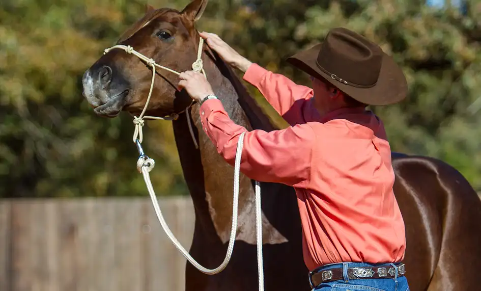 • Tying the horse to a post to practice desensitizing him