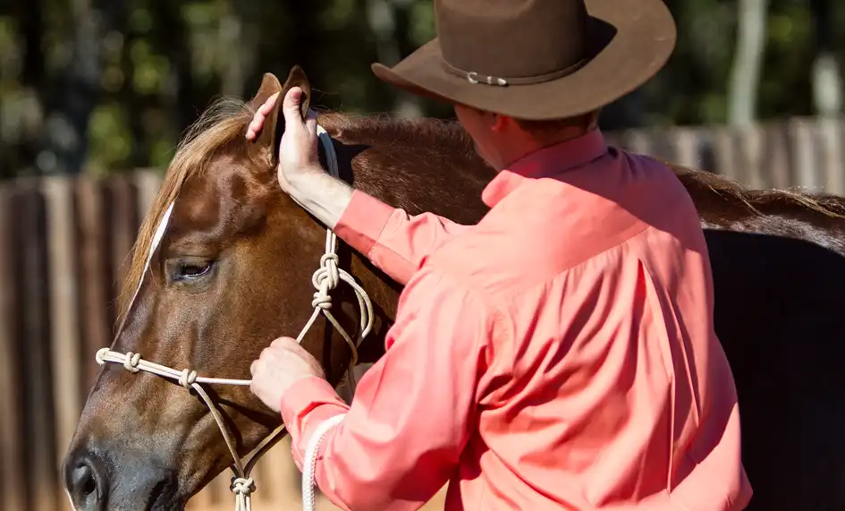 Continue using Approach and Retreat until the horse accepts having the base of his ear rubbed.