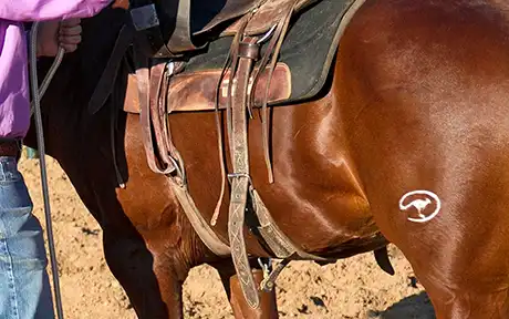 When done up correctly, the back cinch should be just touching the colt’s belly. A lot of people leave the back cinch so loose that there’s a 2- or 3-inch gap between it and the horse’s belly. That’s a good way to get bucked off or to get into a wreck if the horse kicks at a fly and gets his foot caught in the cinch. If you don’t do the cinch up so that it’s touching the colt’s belly, what’s likely to happen is he won’t feel the cinch underneath him and then when you ask him to canter or change directions, all of a sudden the cinch will touch him and he’ll take off bucking because he’s surprised by it. Stay safe by always doing the back cinch up correctly.